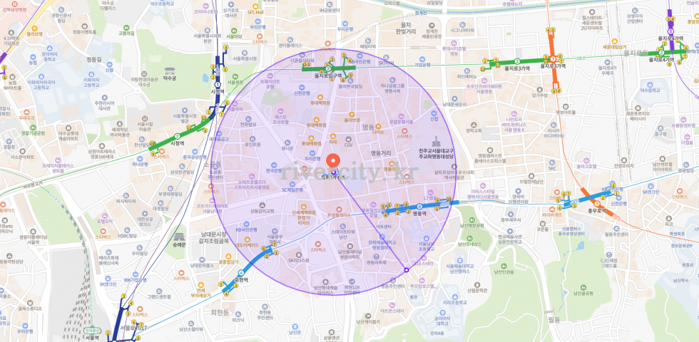 ∙[교통] 회현역, 명동역, 을지로입구역, 시청역